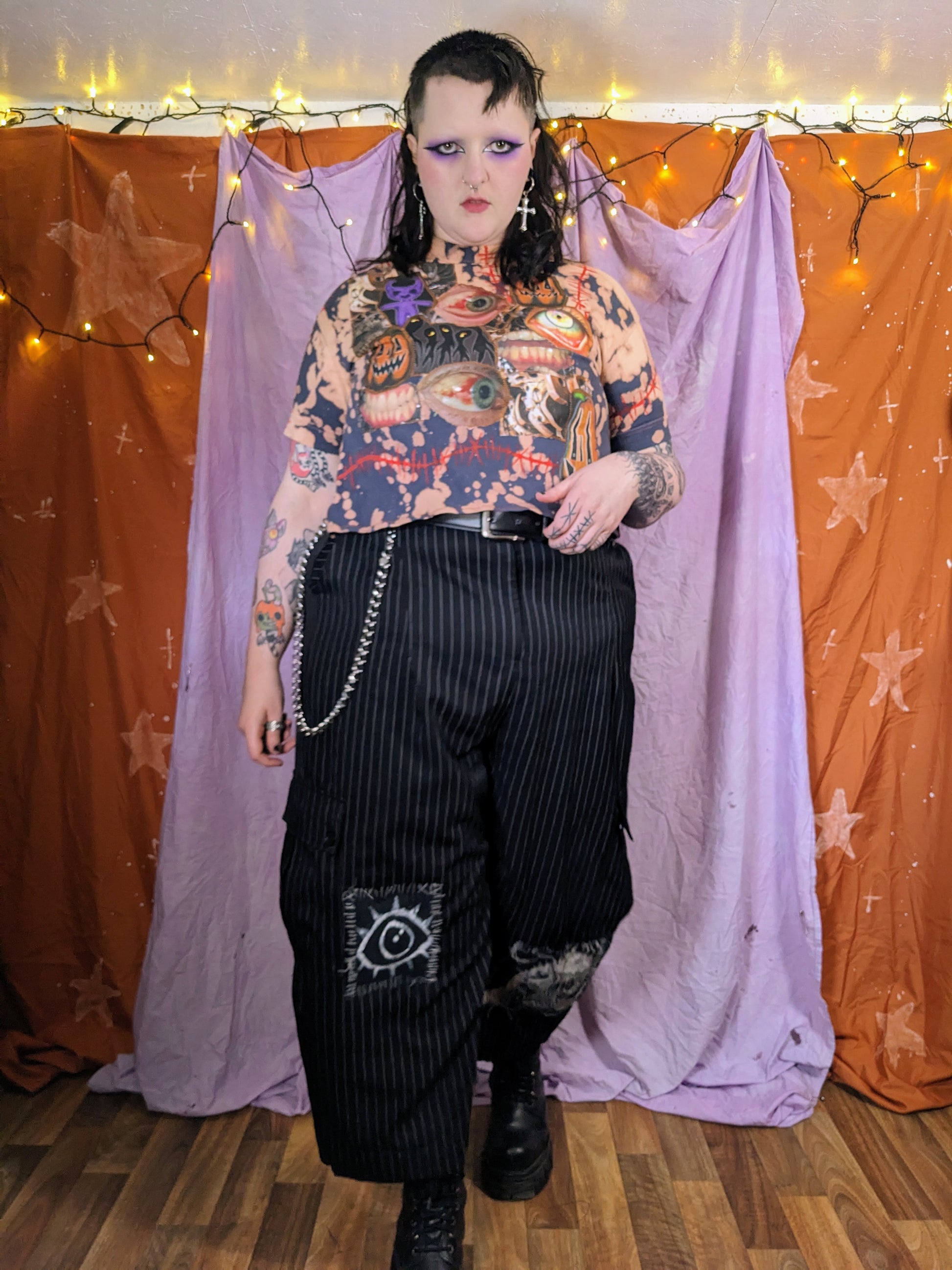 The garment is made from clean second-hand fabrics and clothing. These details add texture and charm! There also may be leftover chalk lines, these will wash off.
