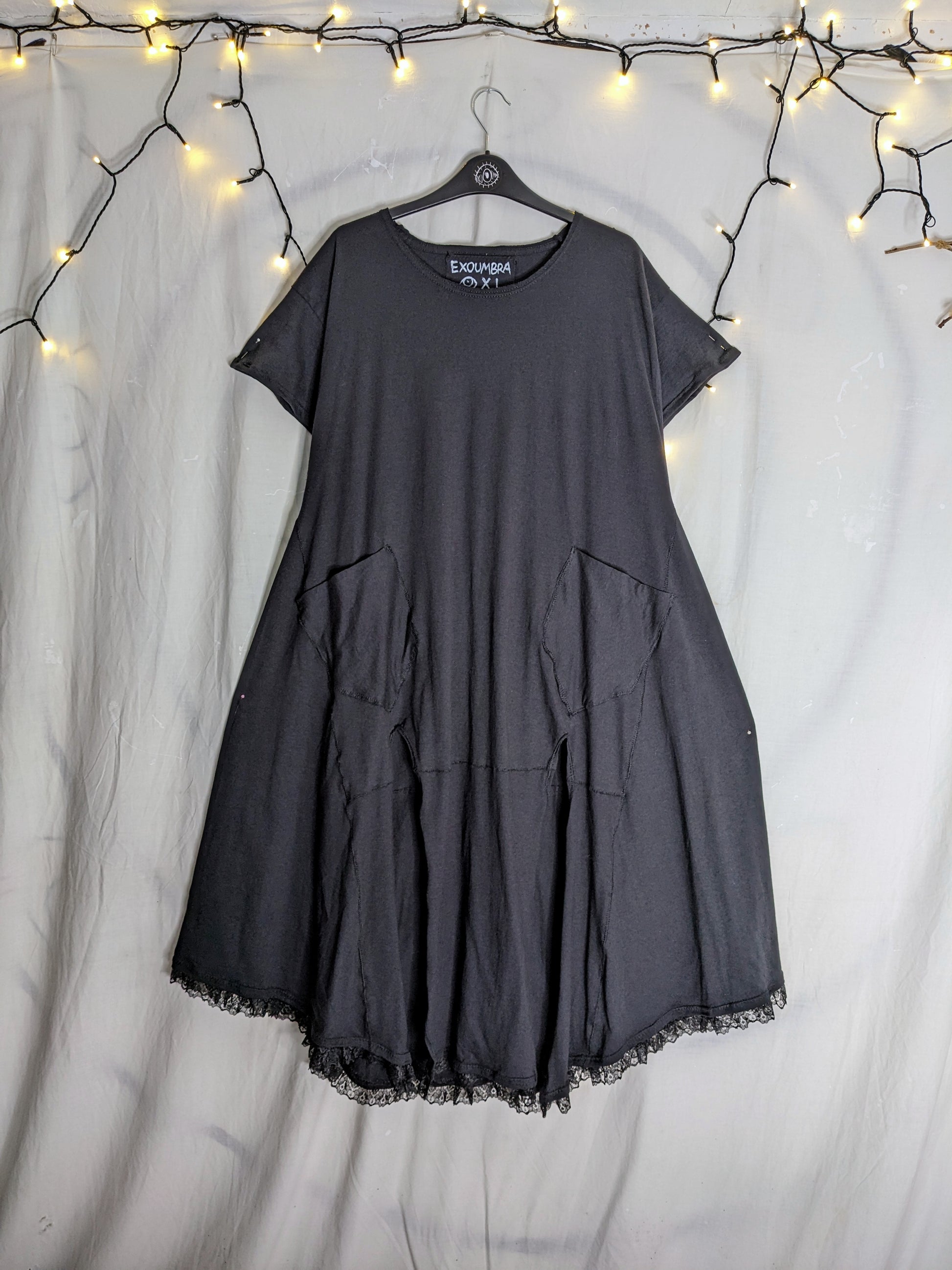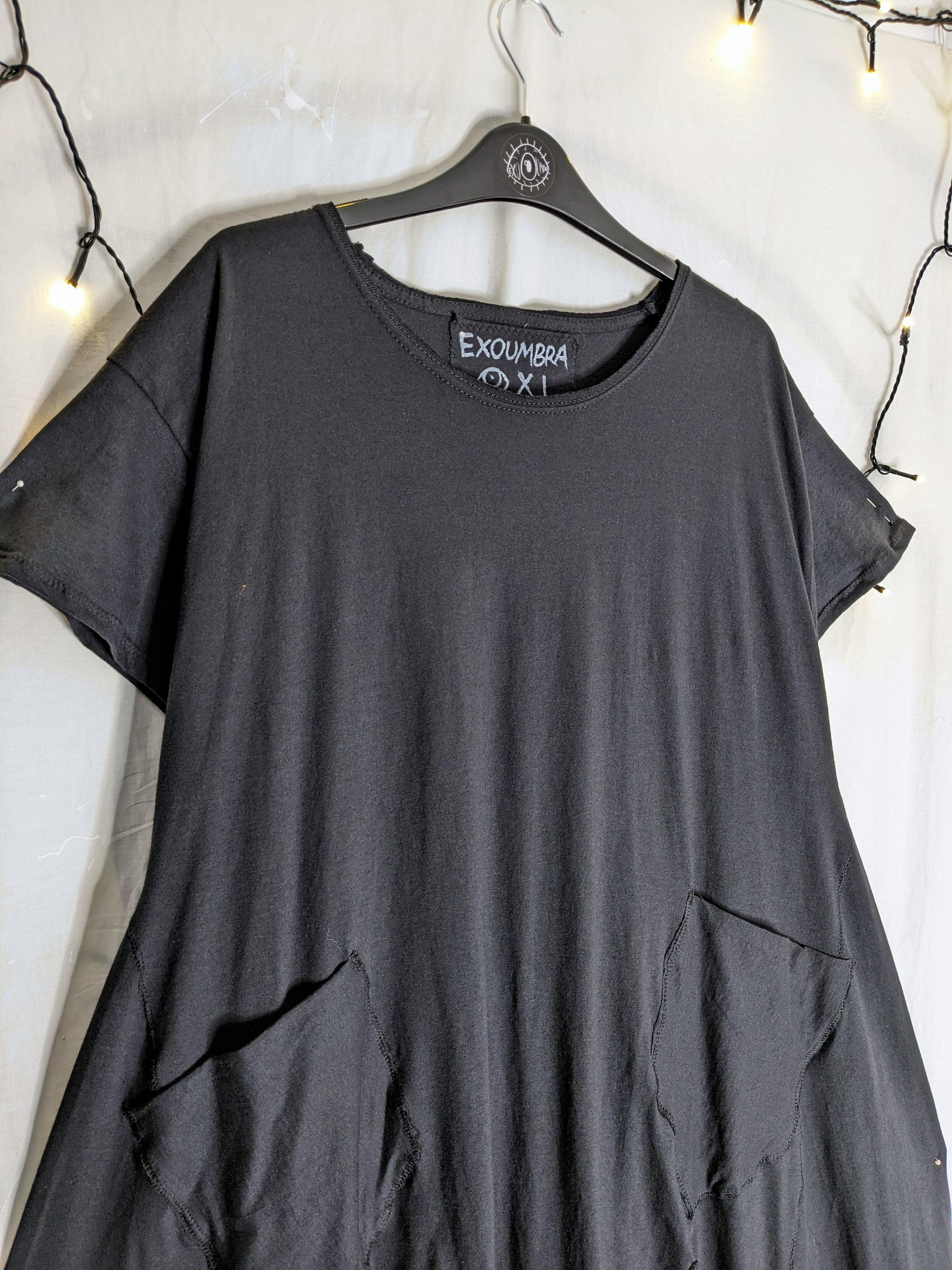 - The model is 5'7" and wears UK 18 on top, 22 on the bottom, wearing an Exoumbra L