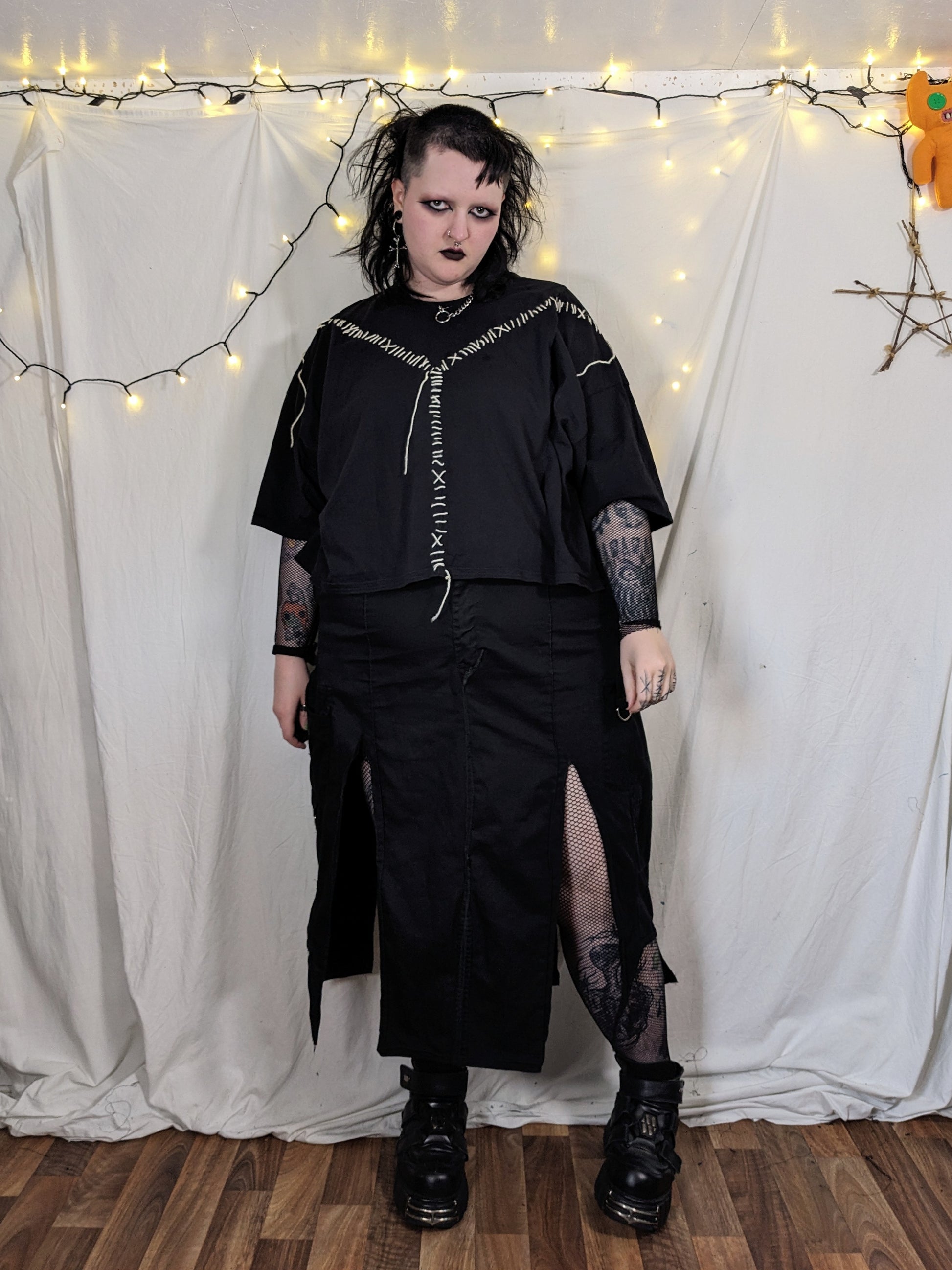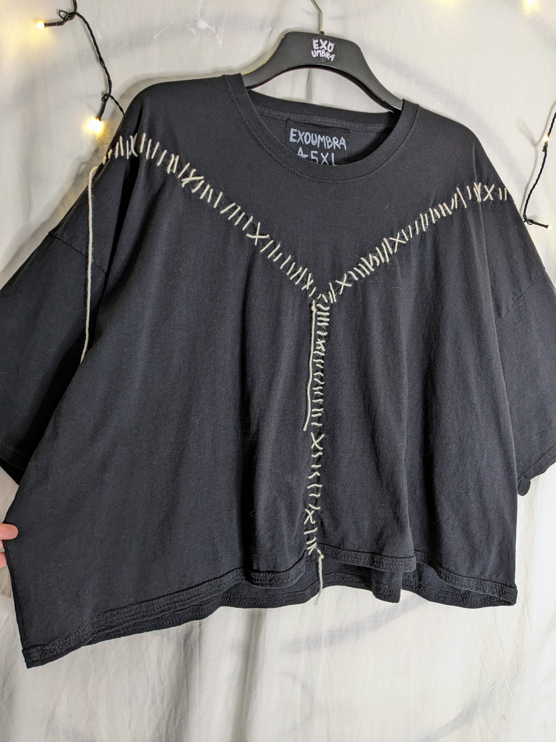 - The model is 5'7" and wears UK 18 on top, 22 on the bottom, wearing an Exoumbra 5XL