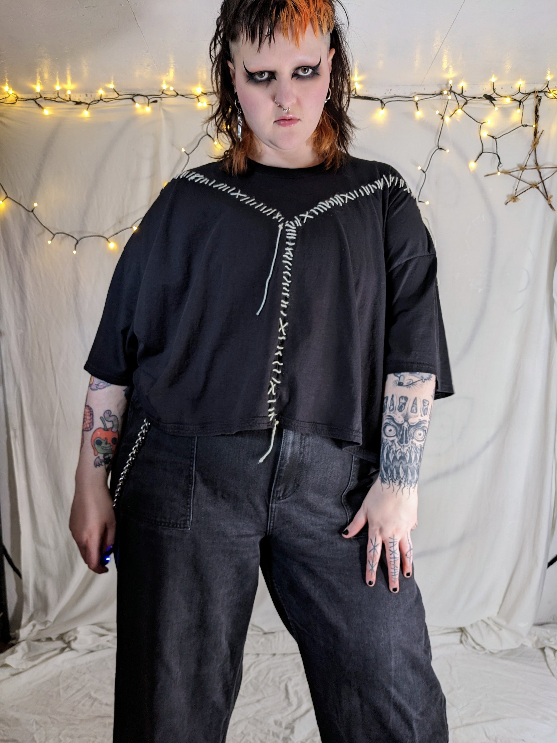 - Unique items made from T-shirts, some using recycled fabric cut-offs