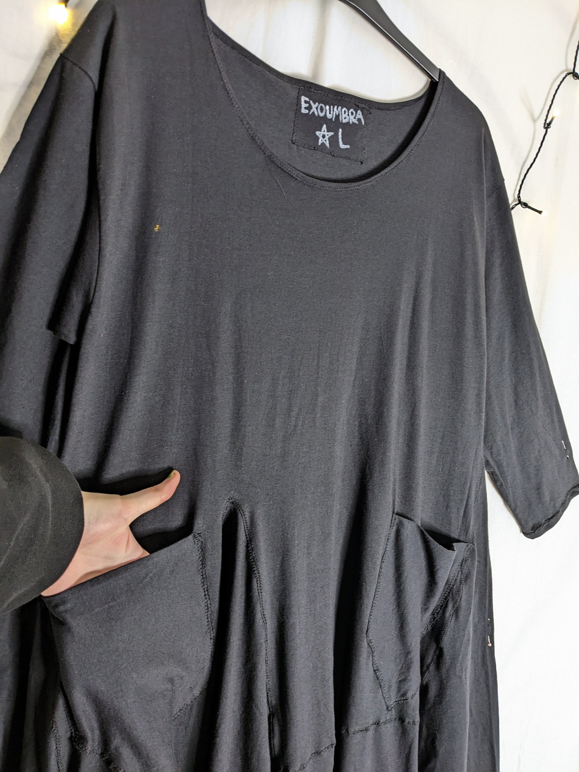 - The model is 5'7" and wears UK 18 on top, 22 on the bottom, wearing an Exoumbra L