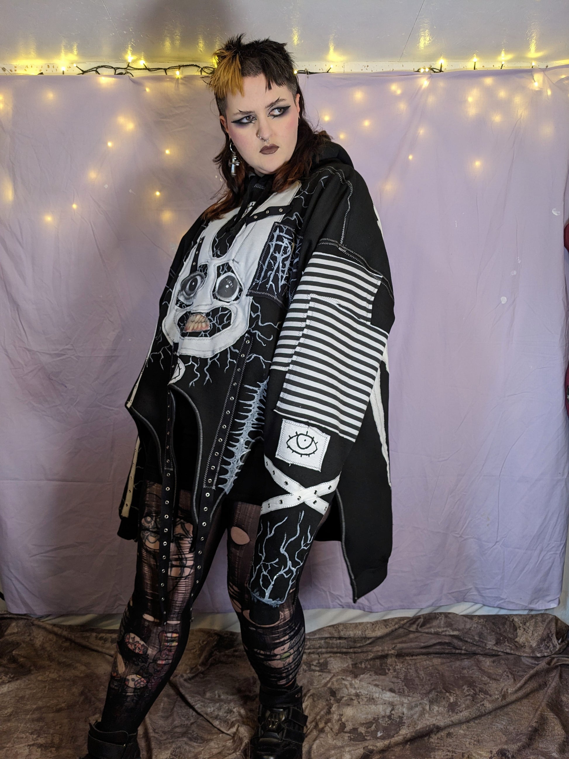 The garment is made from clean second-hand fabrics and clothing. These details add texture and charm! There may also be leftover chalk lines; these will wash off.