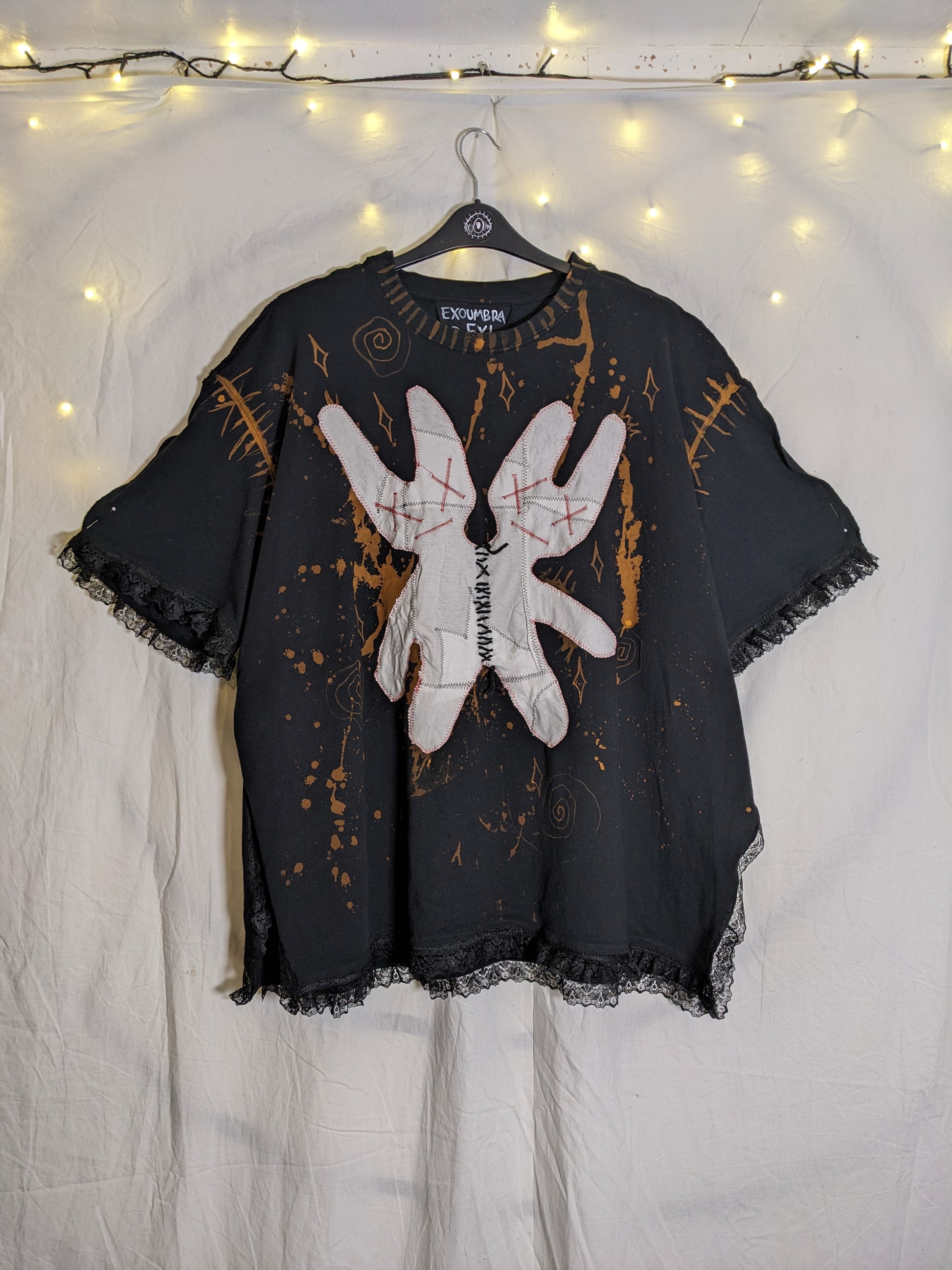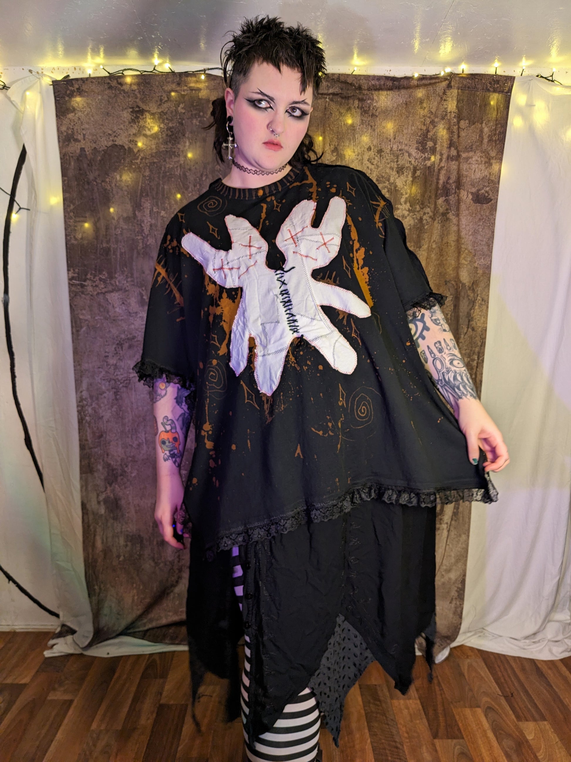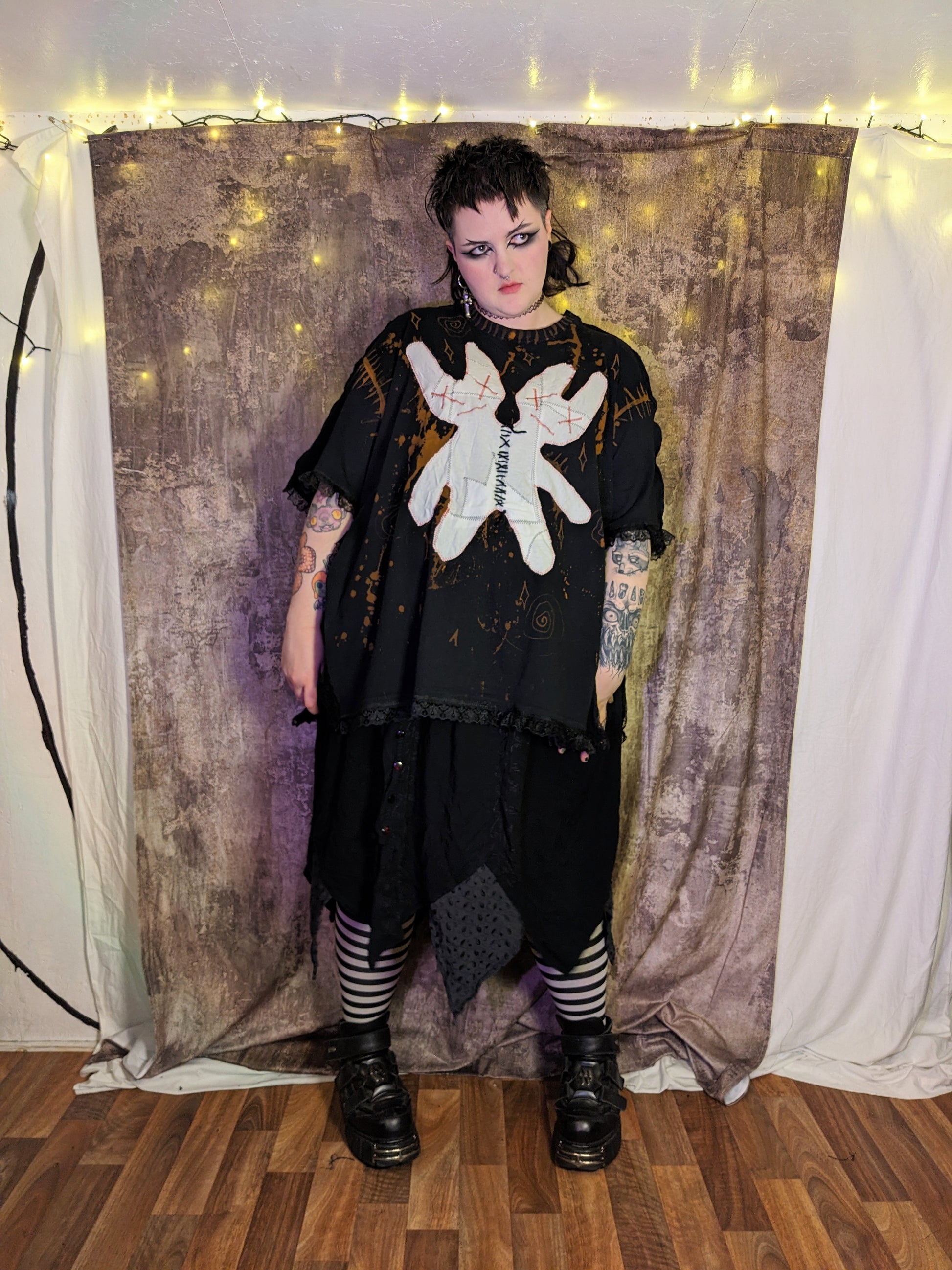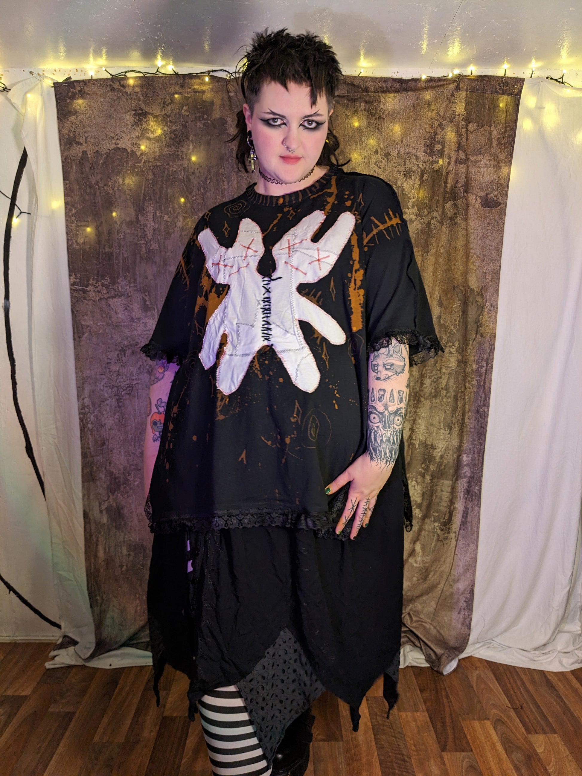 The garment is made from clean second-hand fabrics and clothing. These details add texture and charm! There may also be leftover chalk lines; these will wash off.