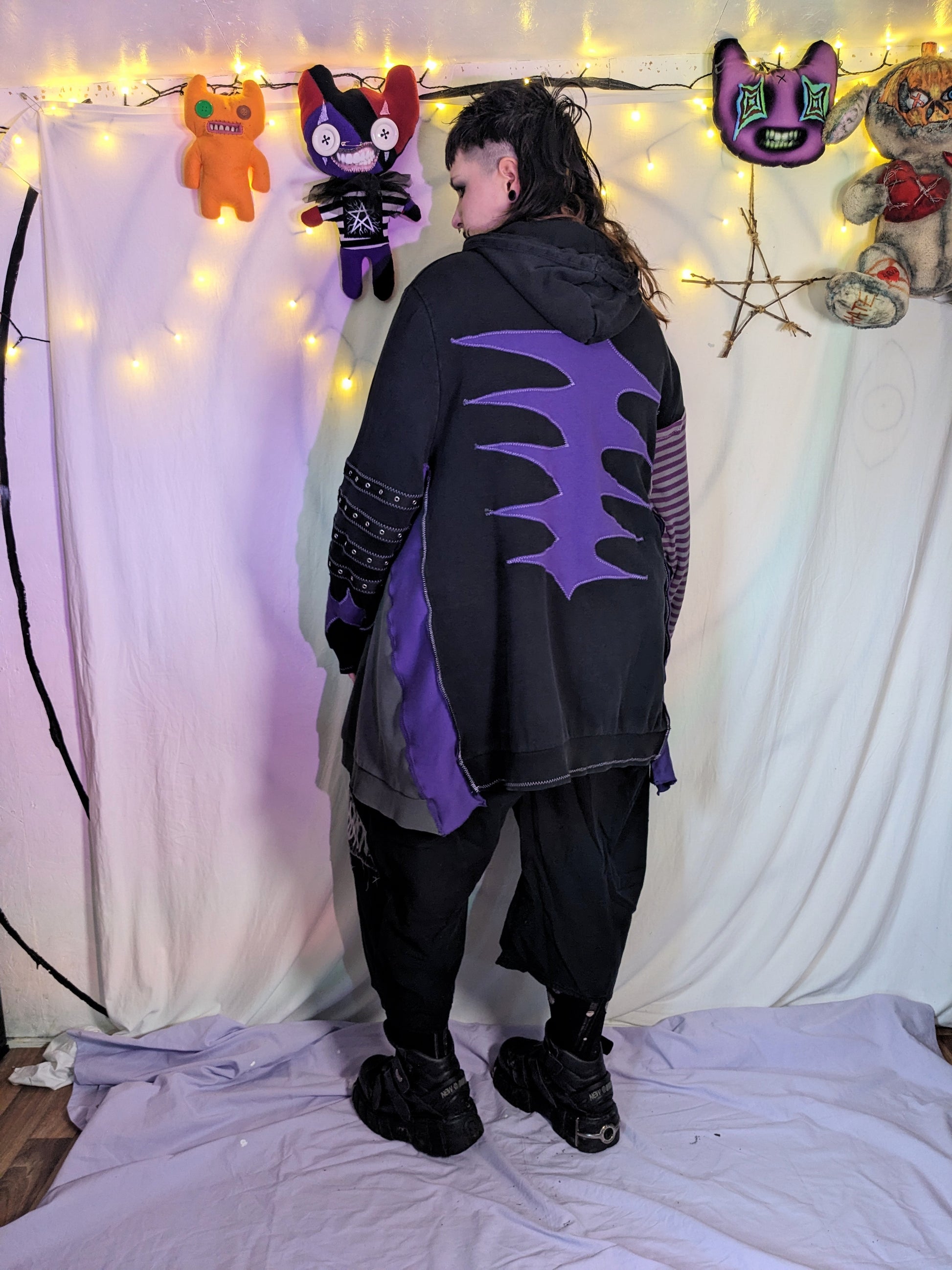 The garment is made from clean second-hand fabrics and clothing. These details add texture and charm! There may also be leftover chalk lines; these will wash off.