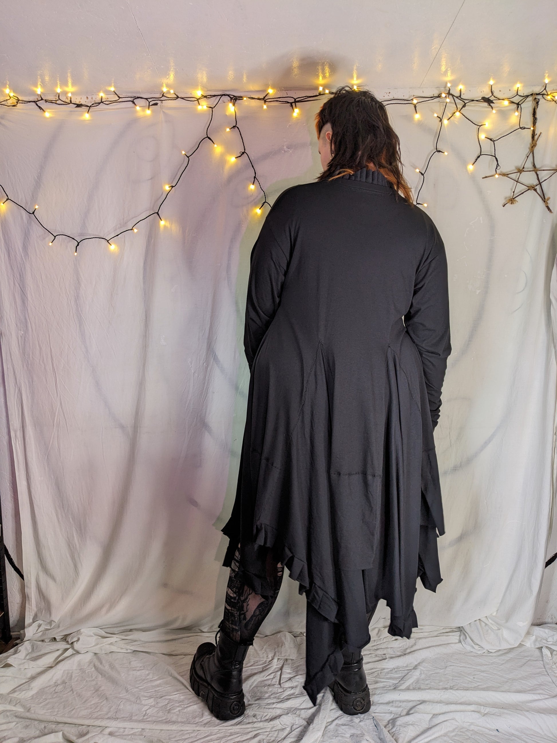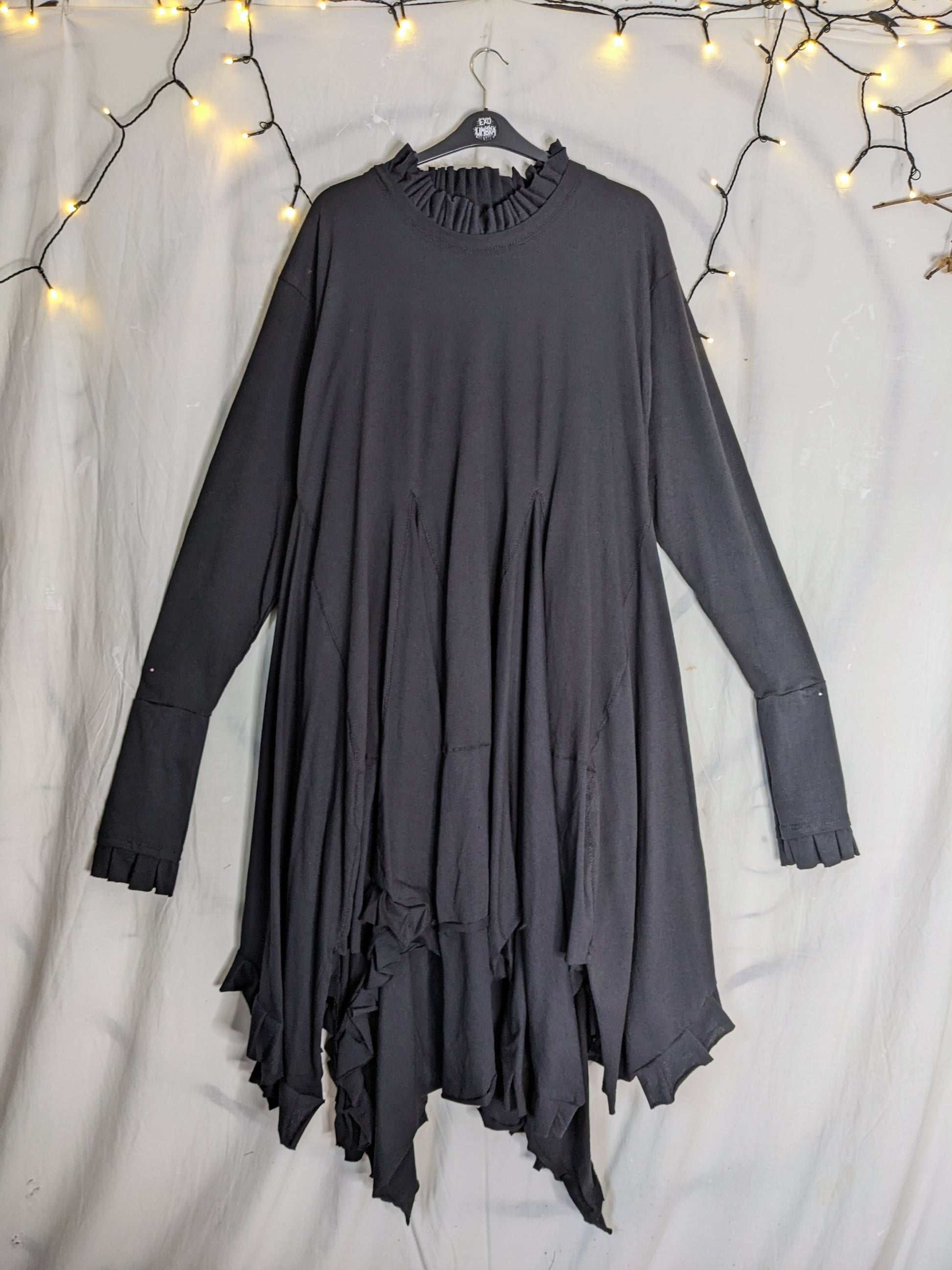 - Extra-long length sleeves with ruffle detail and thumbholes