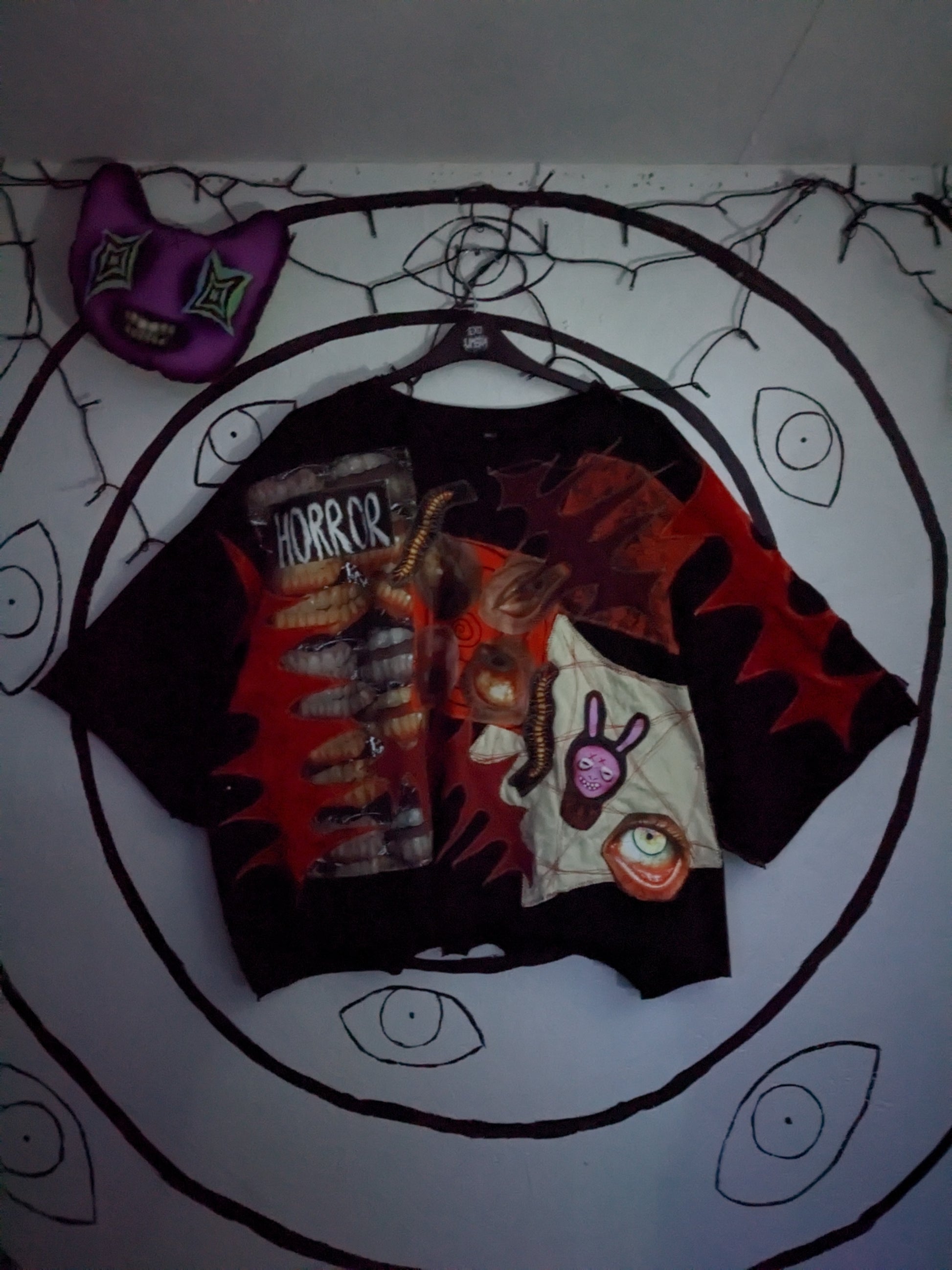 The garment is made from clean second-hand fabrics and clothing. These details add texture and charm! There may also be leftover chalk lines; these will wash off.