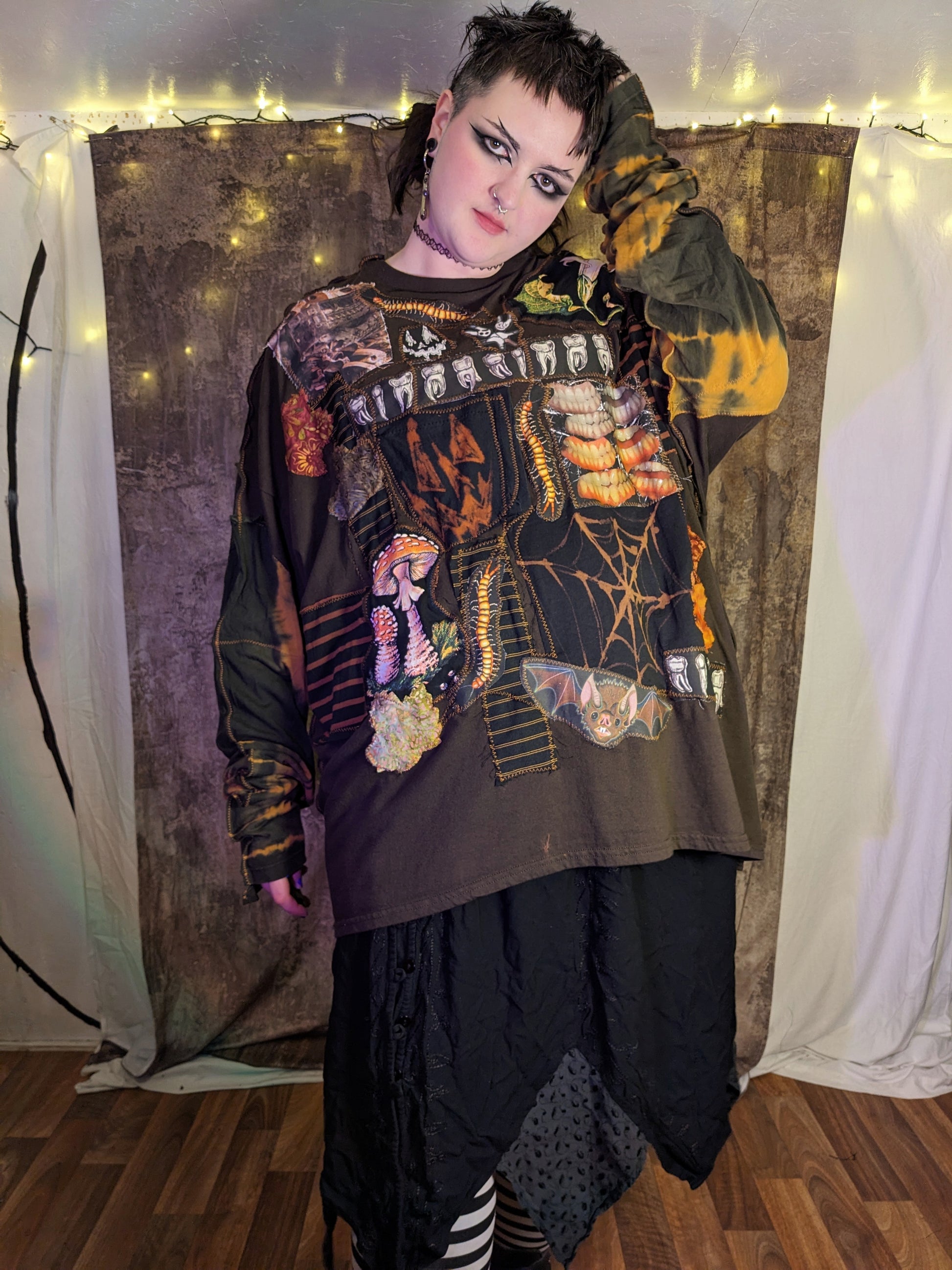 The garment is made from clean second-hand fabrics and clothing. These details add texture and charm! There may also be leftover chalk lines; these will wash off.