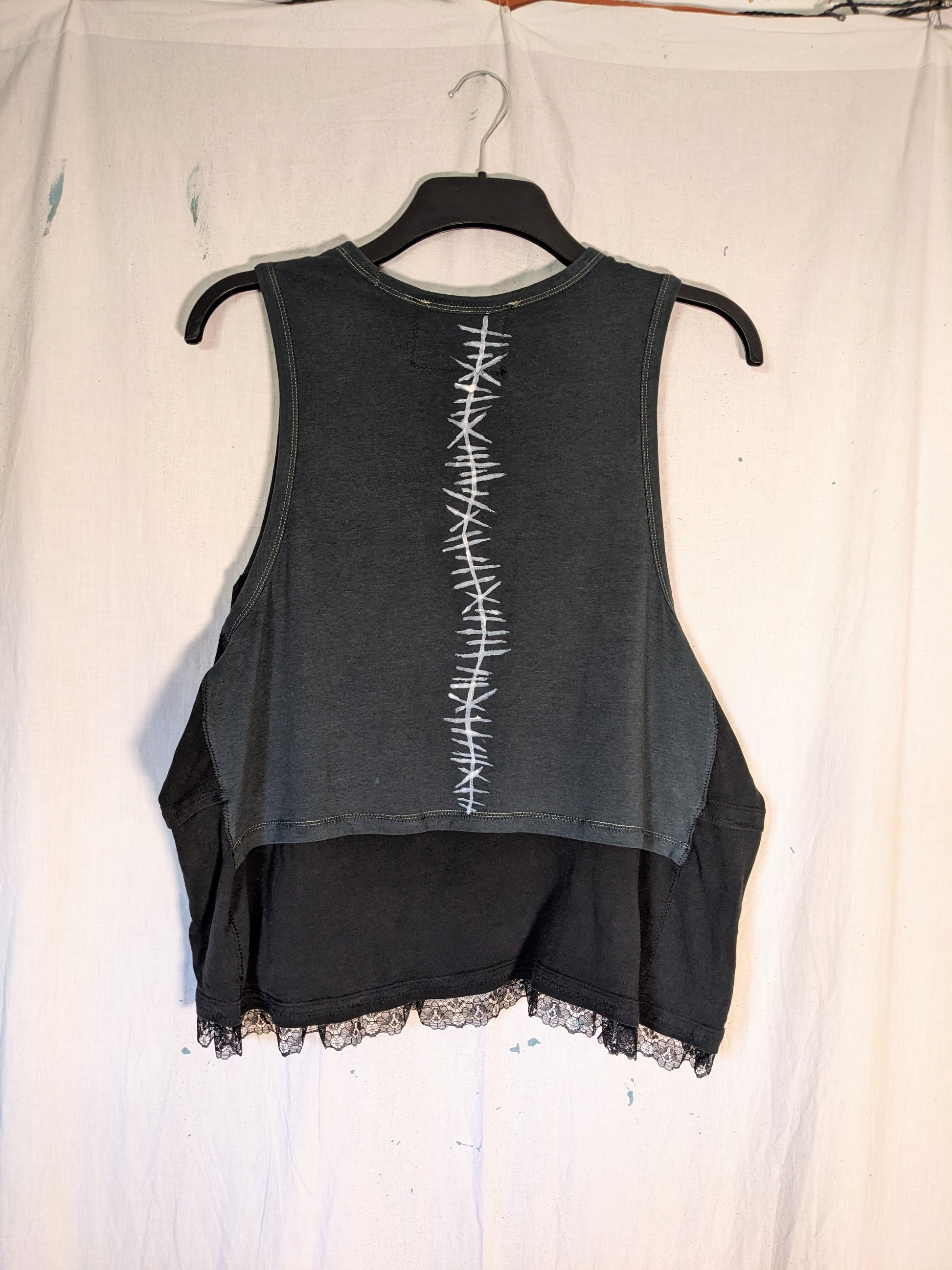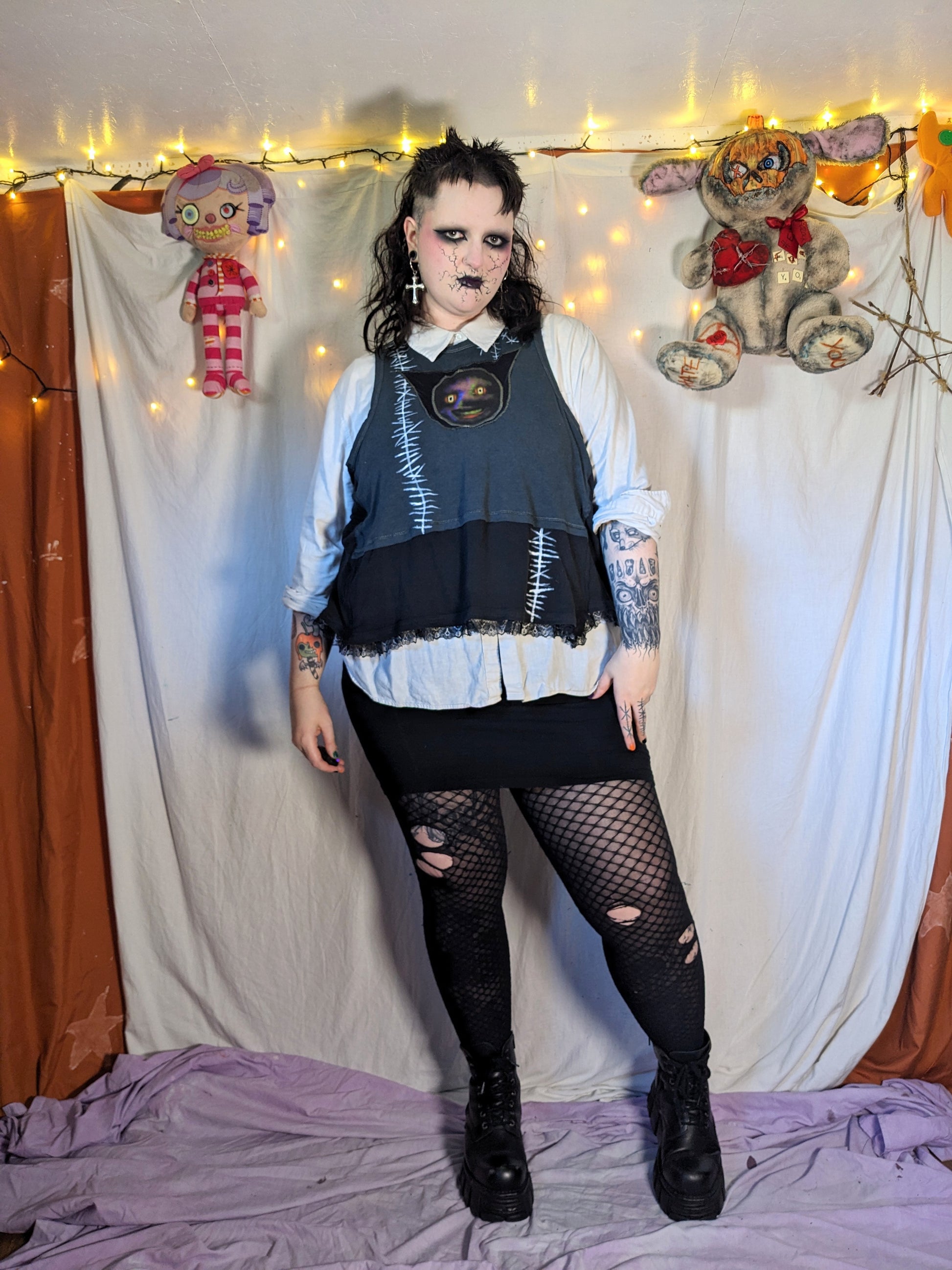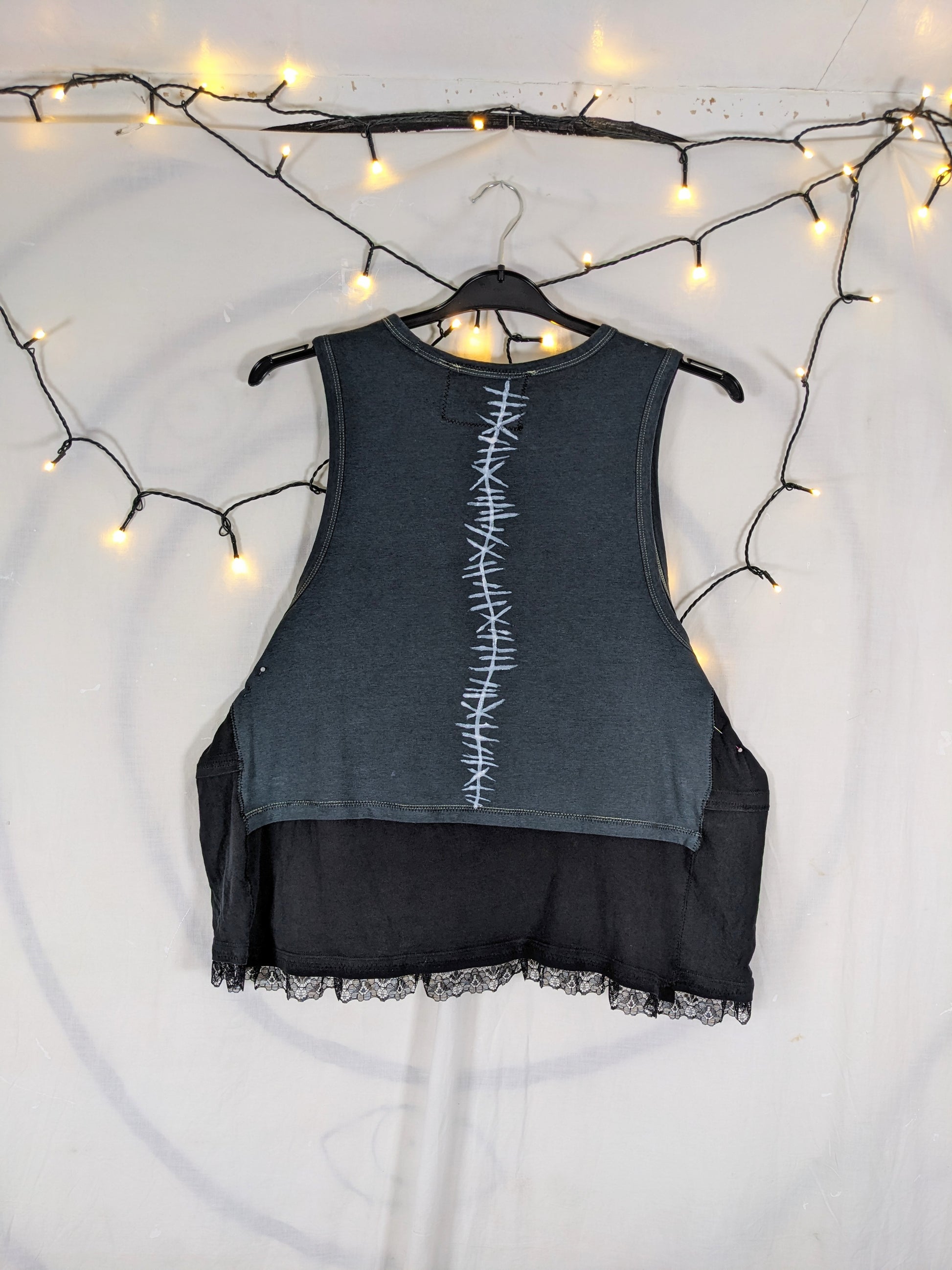 The garment is made from clean second-hand fabrics and clothing. These details add texture and charm! There also may be leftover chalk lines, these will wash off.