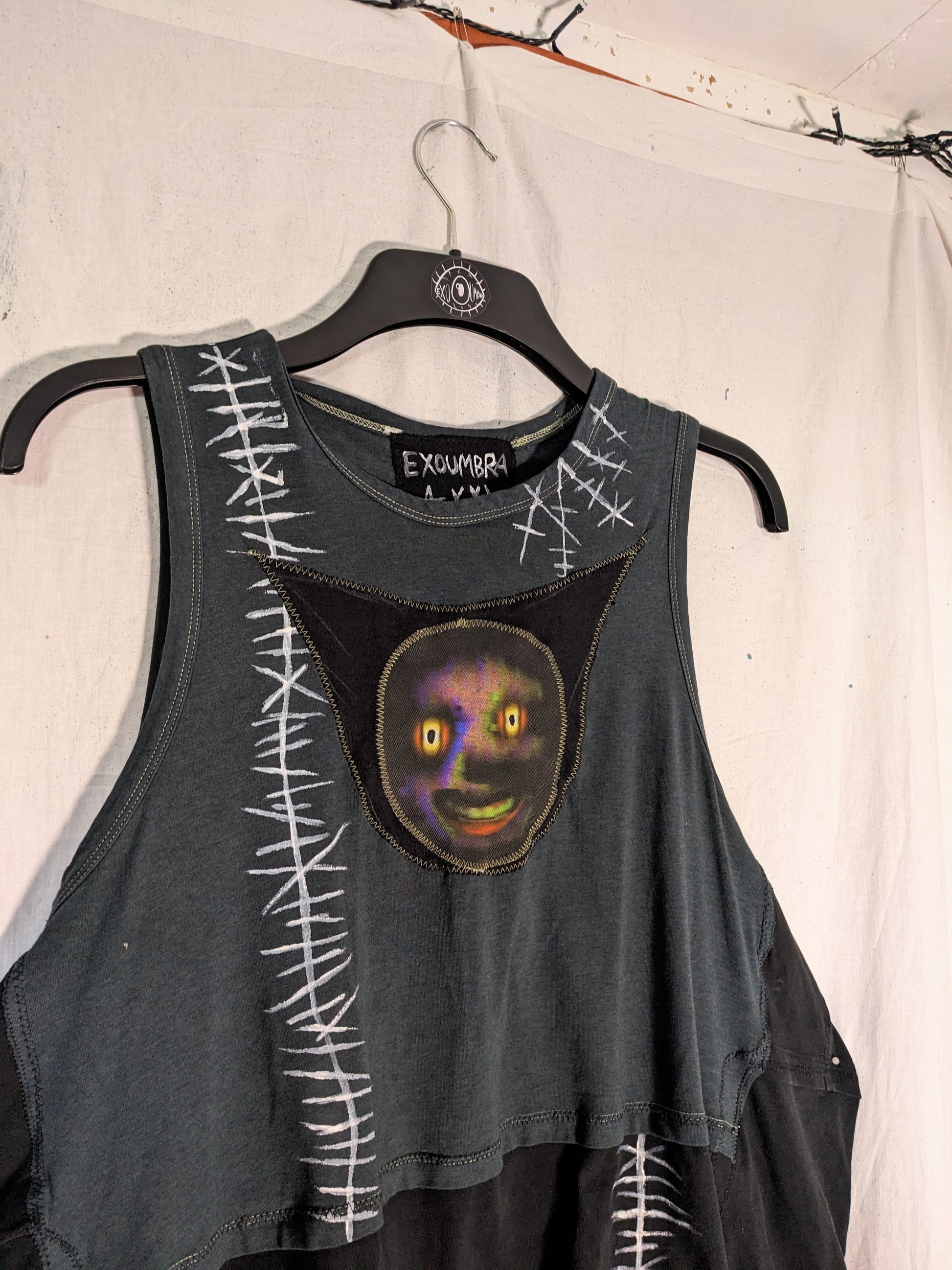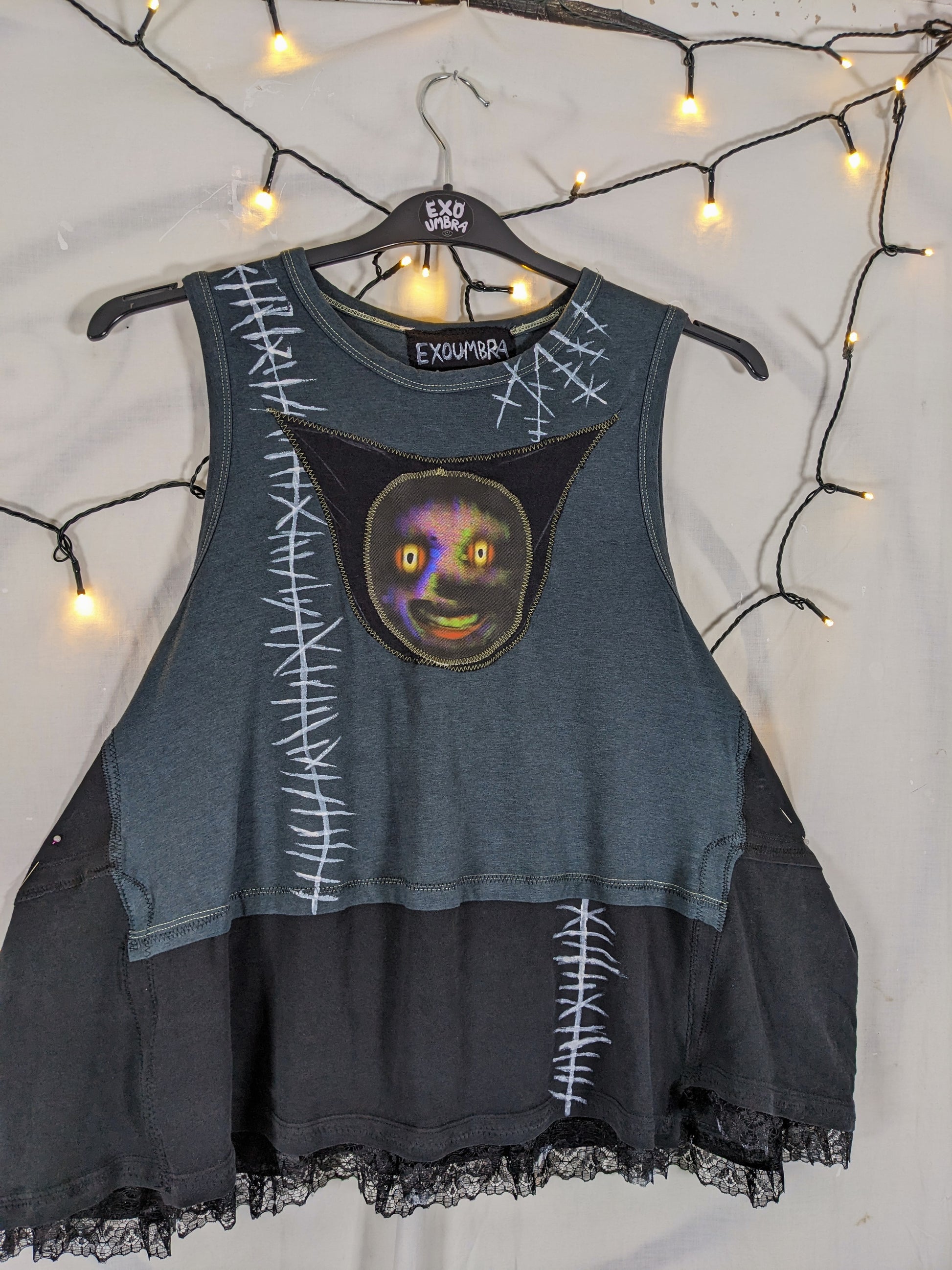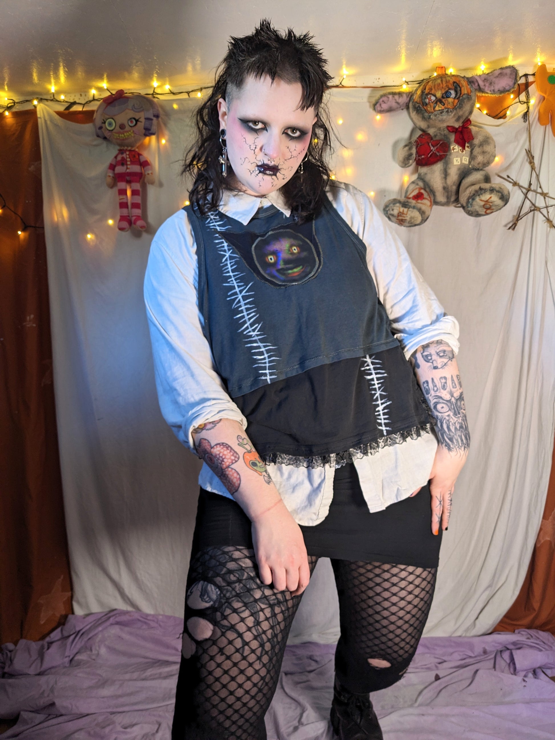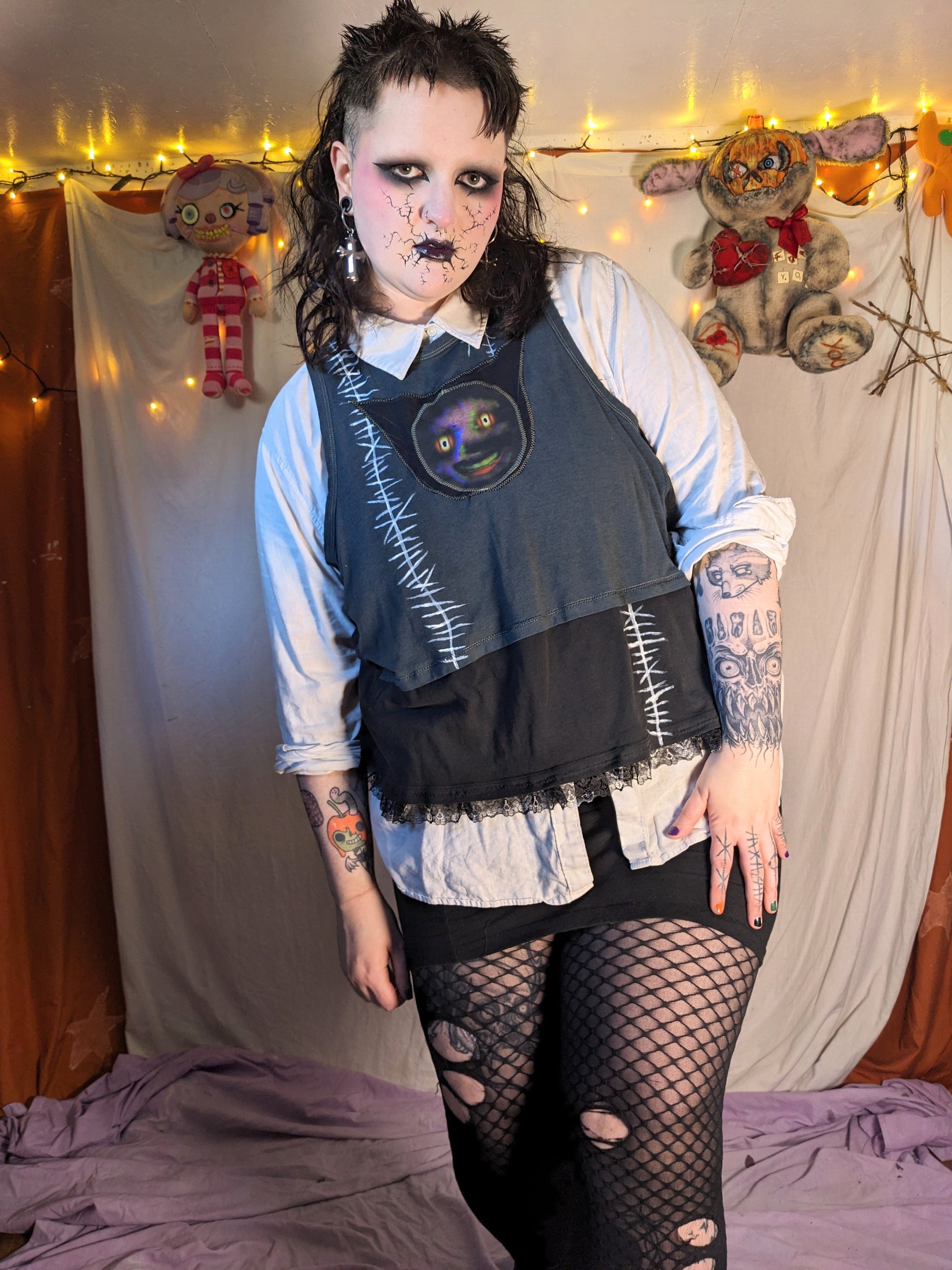 The garment is made from clean second-hand fabrics and clothing. These details add texture and charm! There also may be leftover chalk lines, these will wash off.