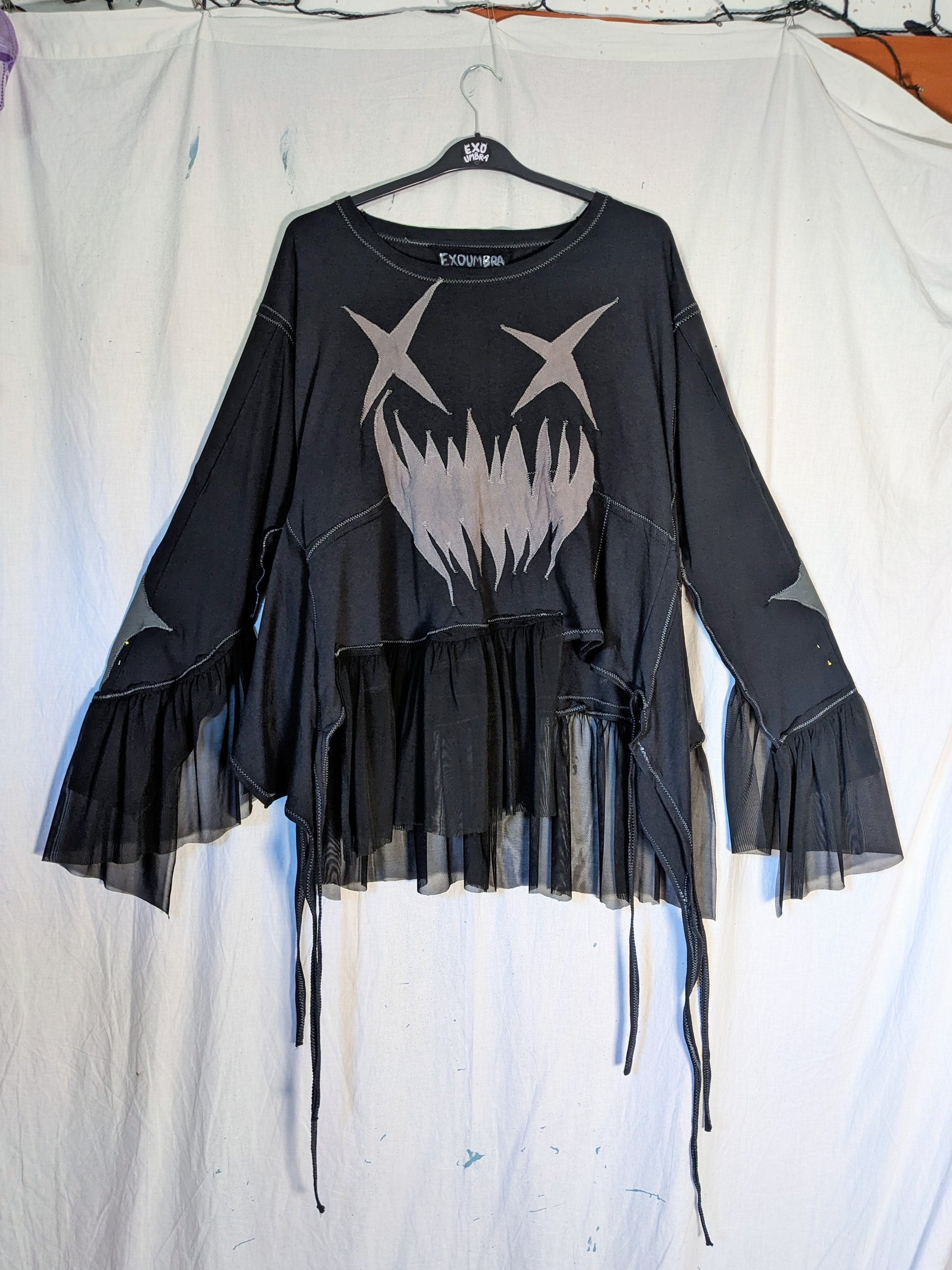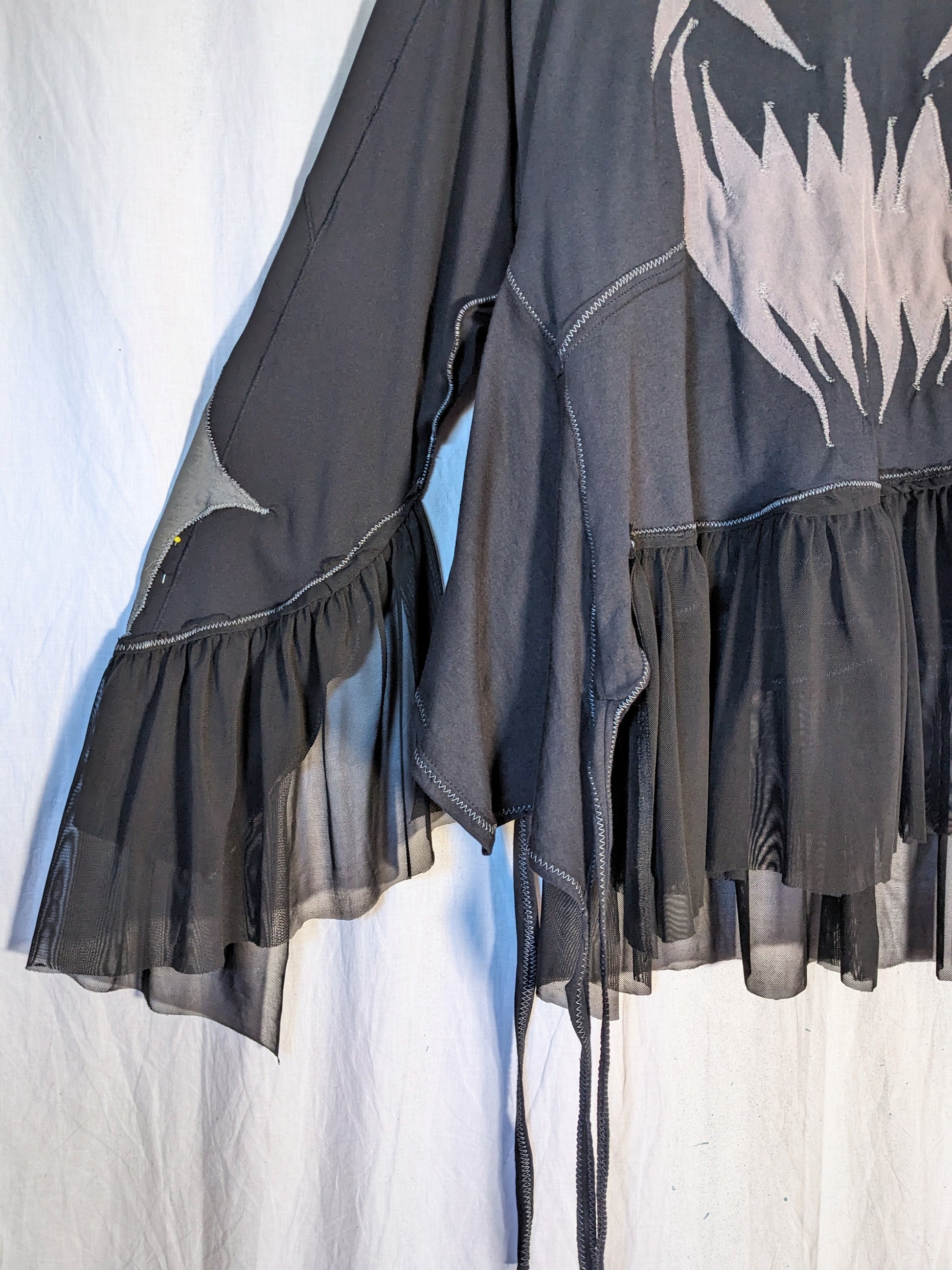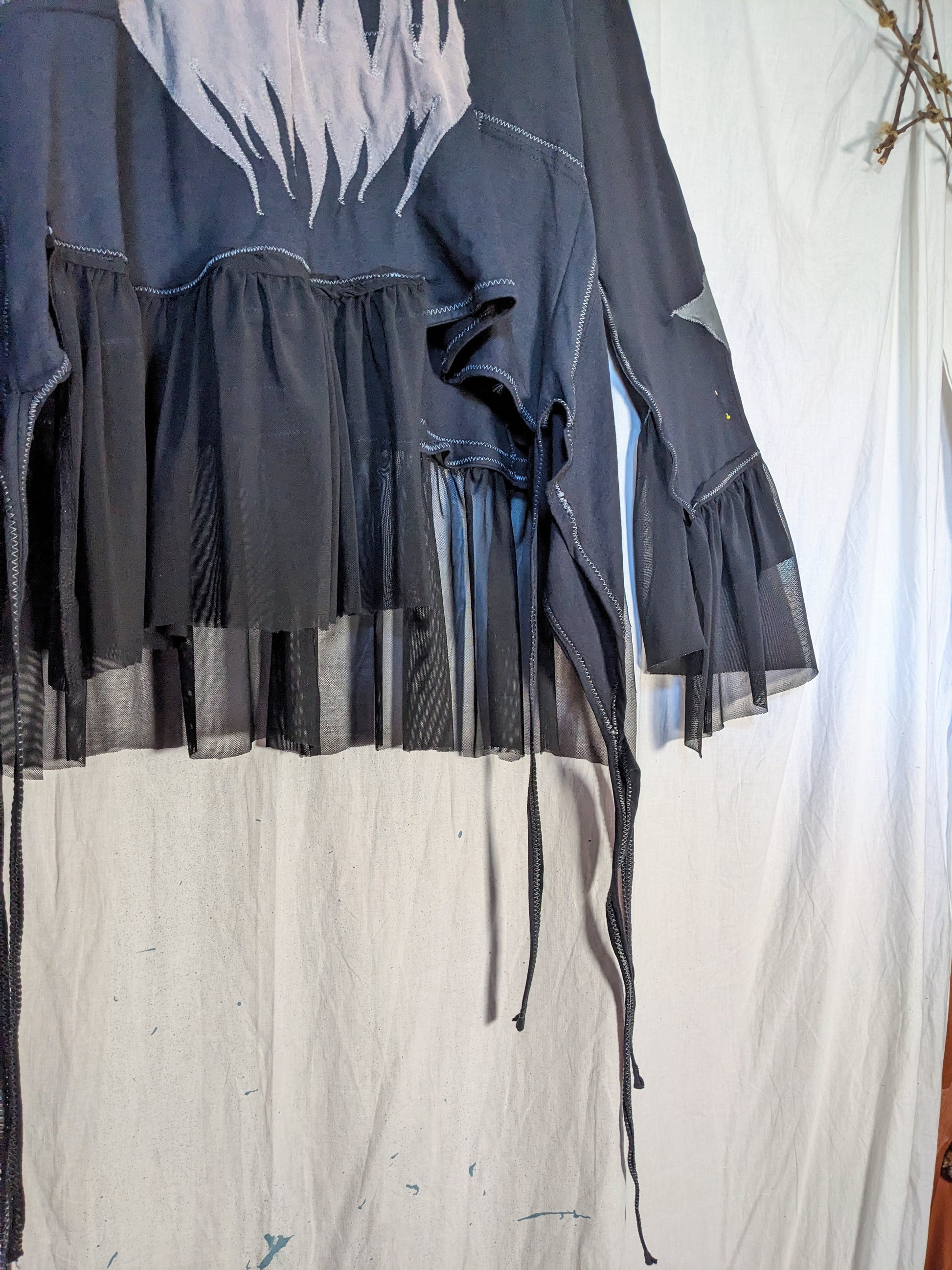 The garment is made from clean second-hand fabrics and clothing. These details add texture and charm! There may also be leftover chalk lines; these will wash off.